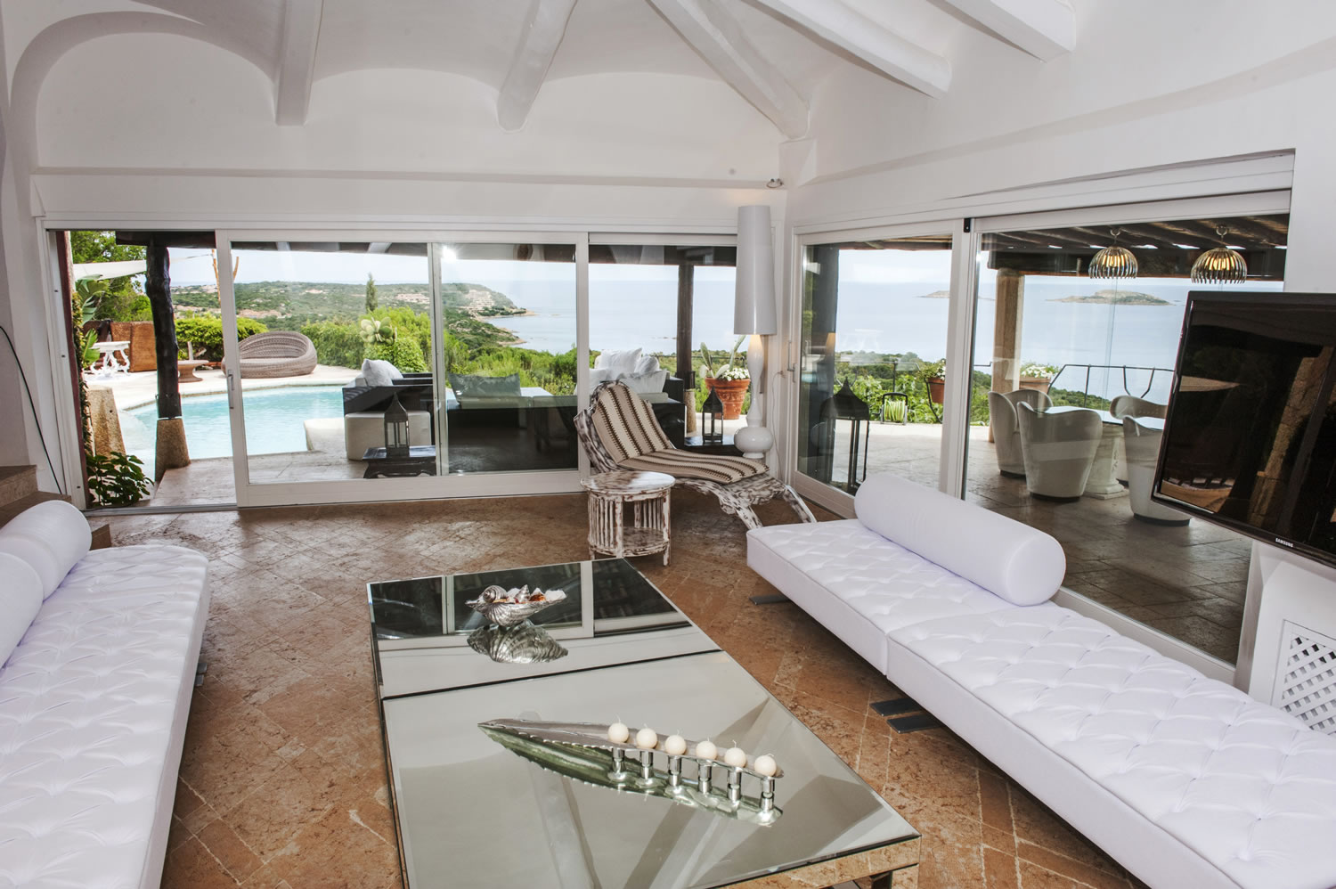 Al livello superiore, un’ampia zona giorno accoglie l’ospite in un ambiente luminoso e arioso, impreziosito da ampie vetrate panoramiche che si aprono su una terrazza coperta e arredata, da cui si gode di una vista emozionante sul paesaggio gallurese. Gli arredi, selezionati con cura, esprimono un gusto raffinato e contemporaneo.