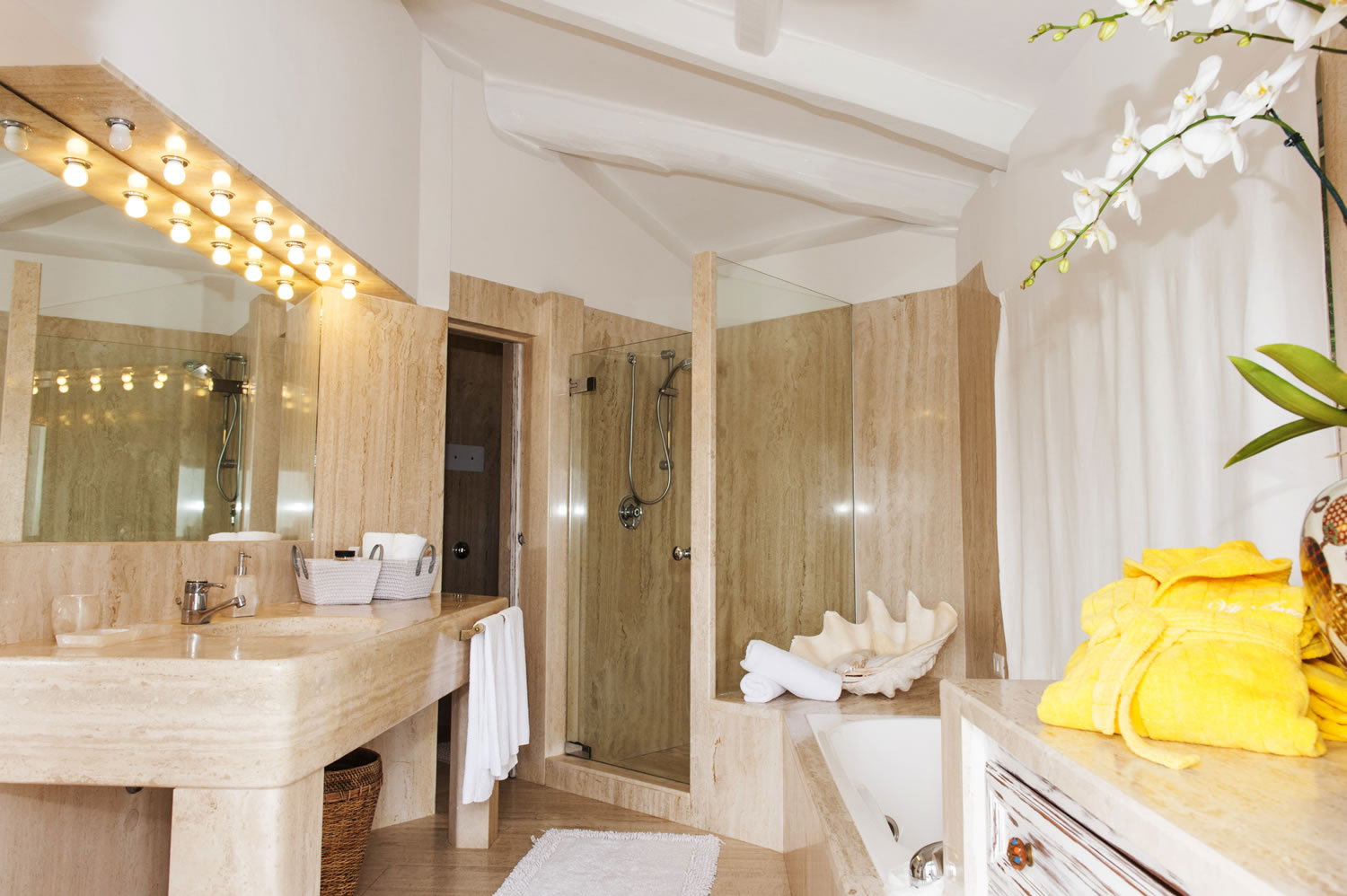 La suite padronale è un mondo a sé: dispone di doppio bagno con vasca idromassaggio e doccia, due cabine armadio, uno studio privato, una terrazza panoramica, due cassaforti e TV al plasma. Ogni dettaglio è stato pensato per offrire intimità, funzionalità e piacere.