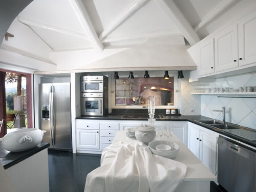 La cucina spaziosa e funzionale è collegata a due zone pranzo: una interna, elegante e riservata, e una esterna completamente attrezzata, con barbecue, zona pizzeria con forno a legna e ampio tavolo conviviale per momenti indimenticabili all’aperto.