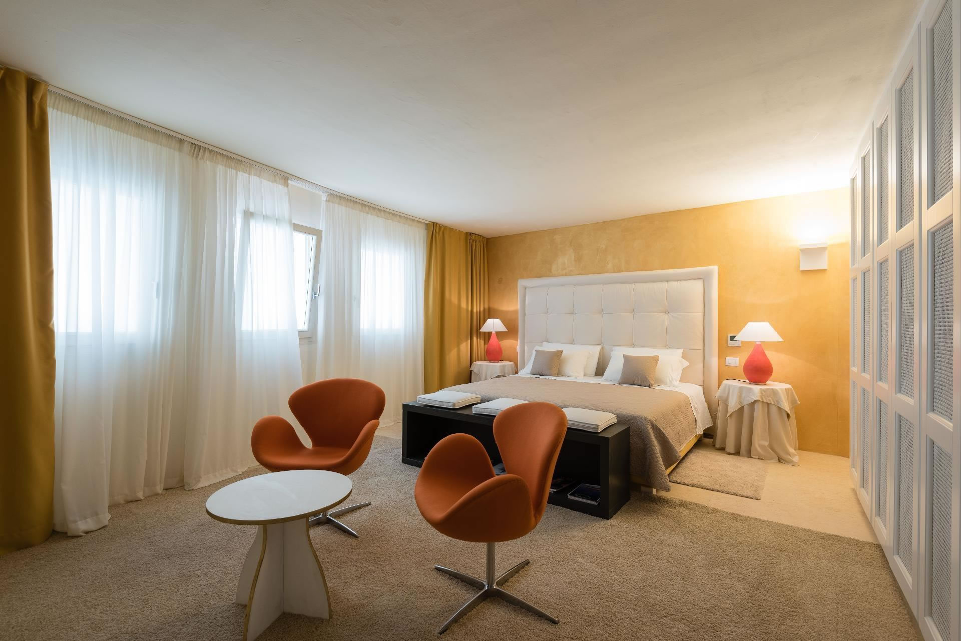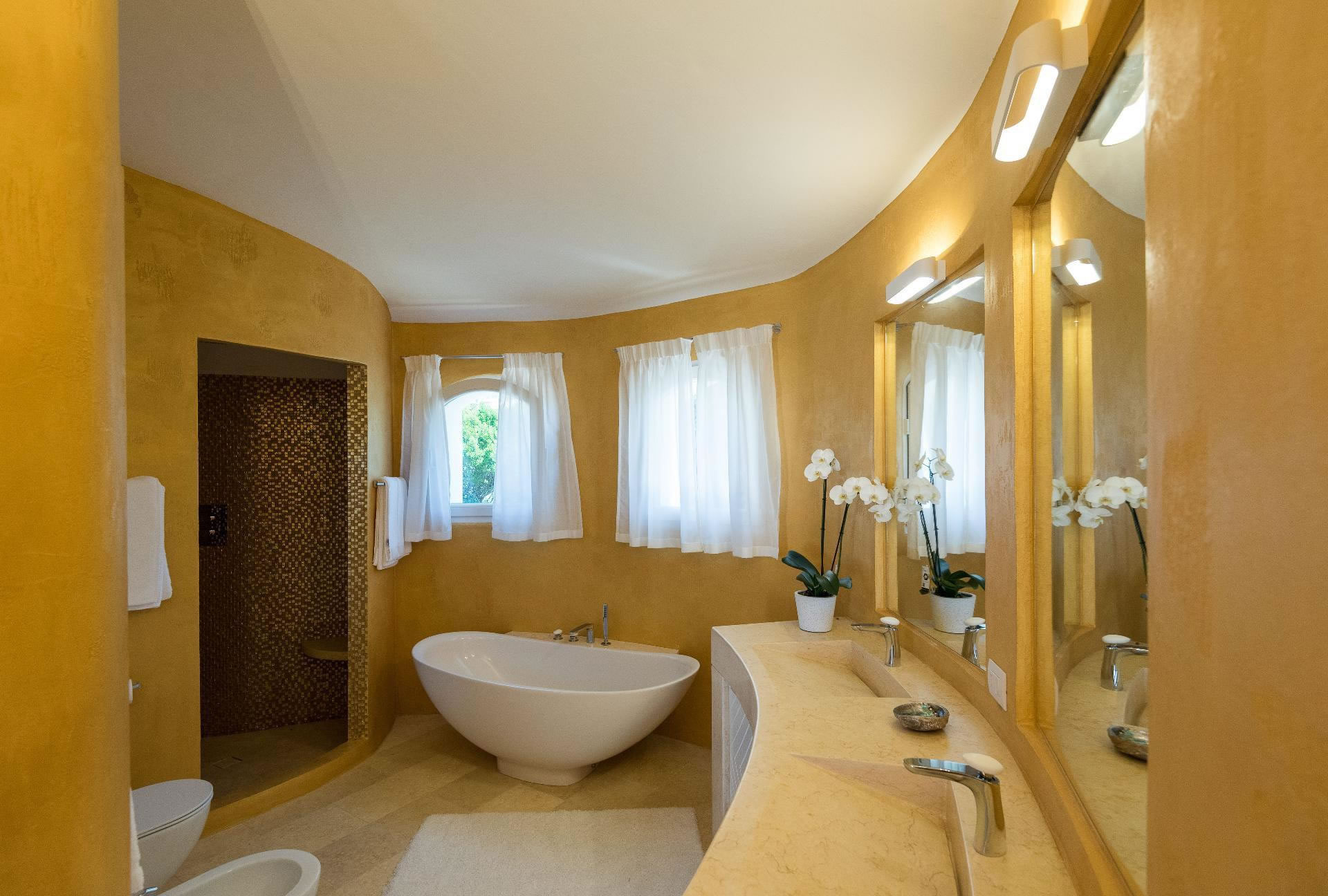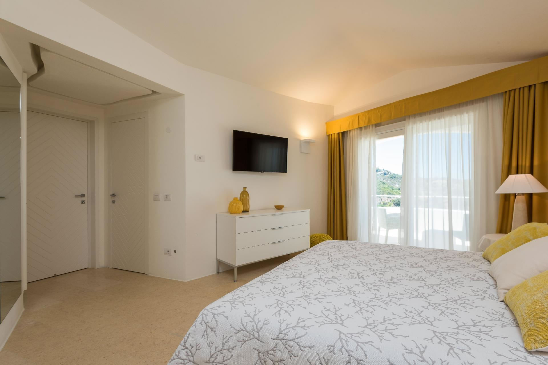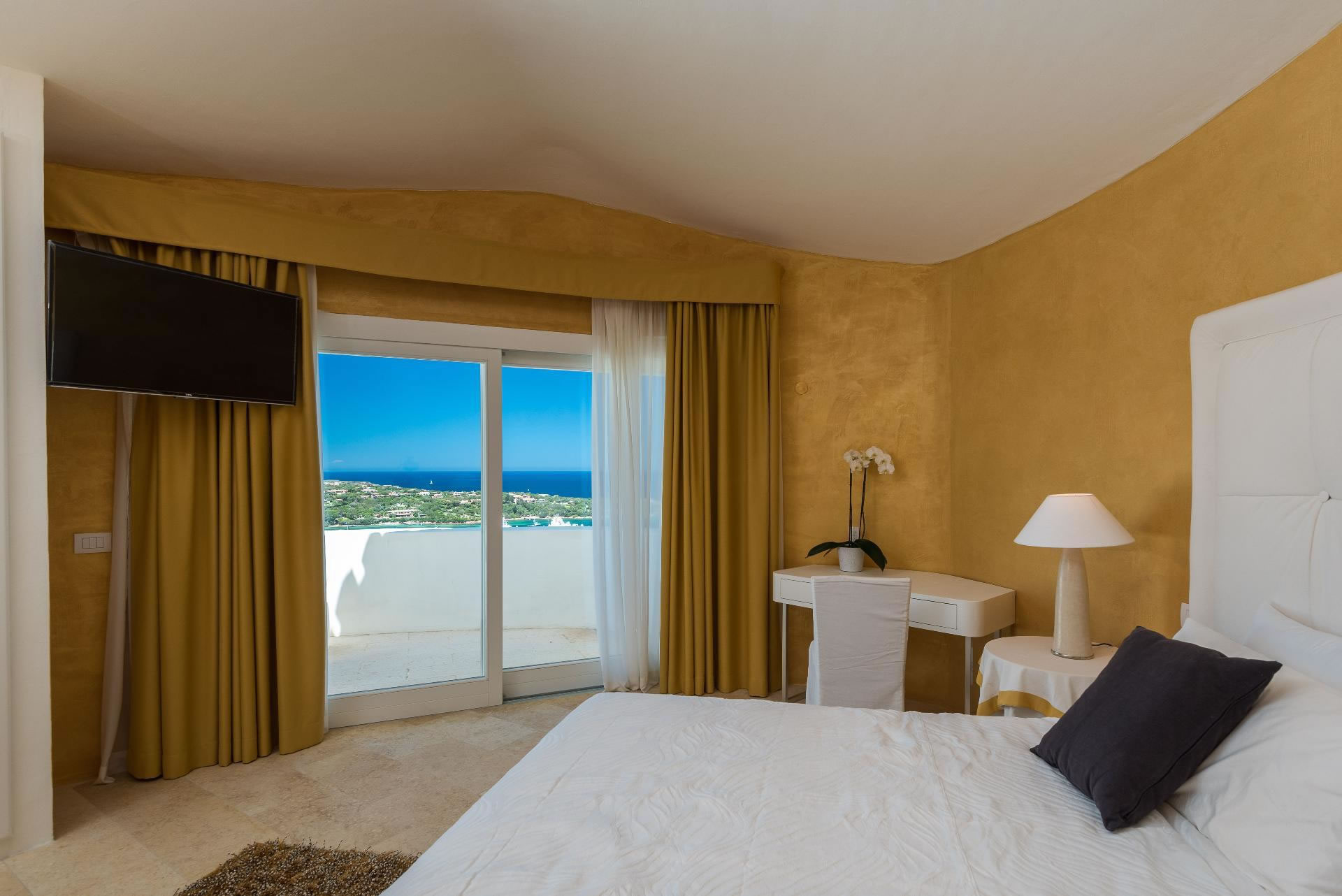Una spettacolare suite padronale occupa l’intero livello, con bagno privato, cabina armadio e due terrazze panoramiche, da cui si gode una vista privilegiata sul mare e sulla Marina di Porto Cervo. Uno spazio esclusivo, riservato, capace di coniugare comfort e bellezza in modo impeccabile.