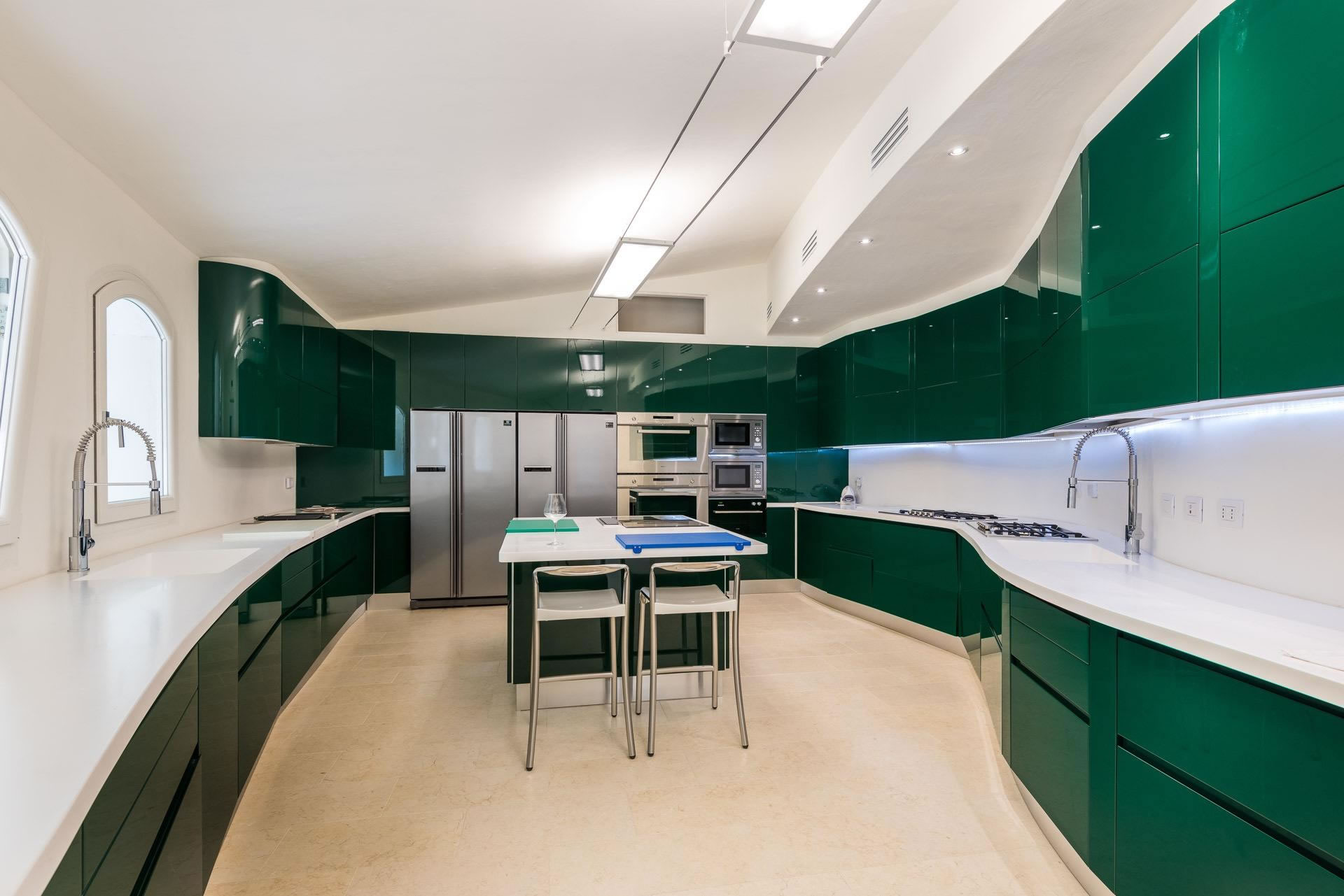 Due ulteriori camere matrimoniali con bagno privato, e il cuore della vita sociale della villa: un salone triplo dal gusto contemporaneo, con area relax, zona lettura e raffinata sala da pranzo. La cucina abitabile, accessoriata con elettrodomestici di ultima generazione, è pensata sia per momenti di condivisione in famiglia, sia per ricevere ospiti con stile.
