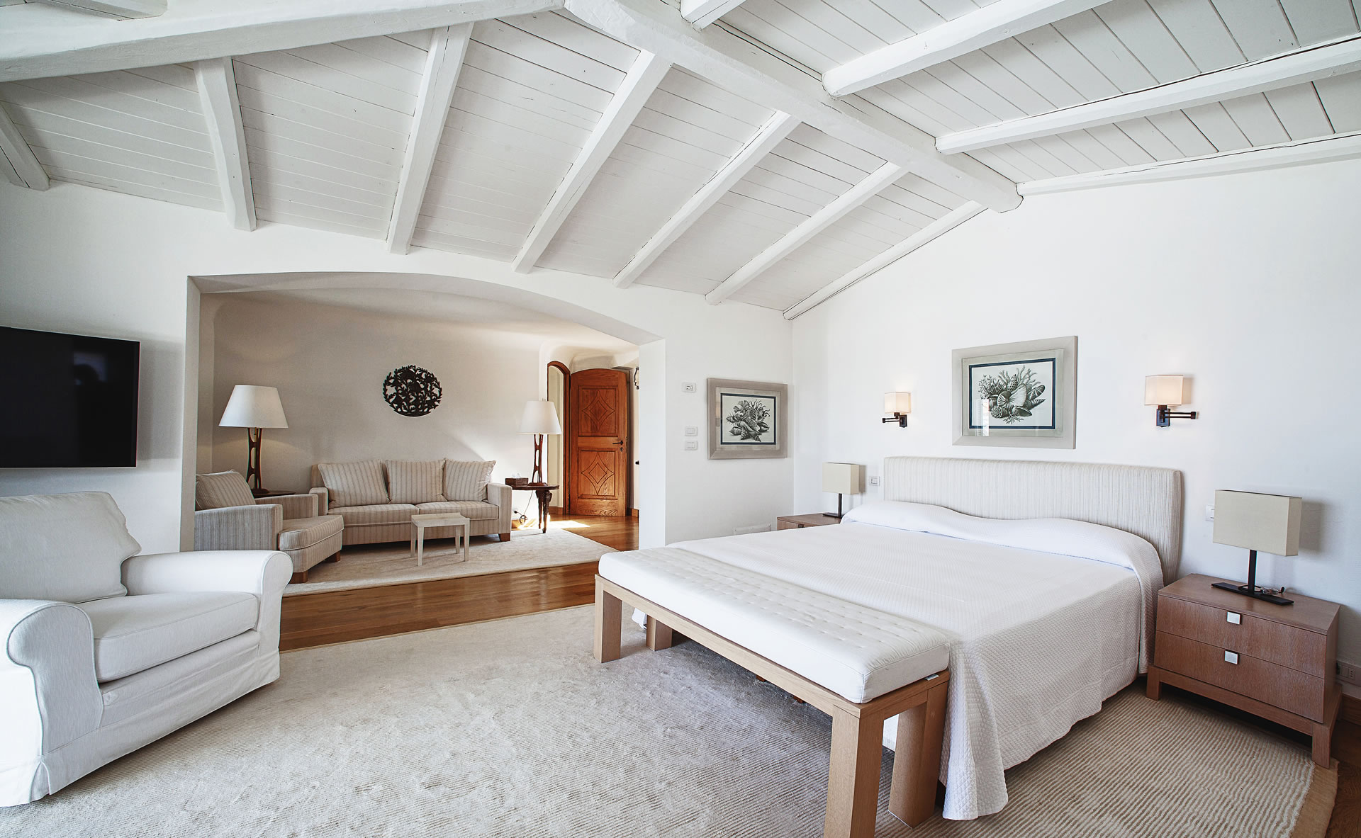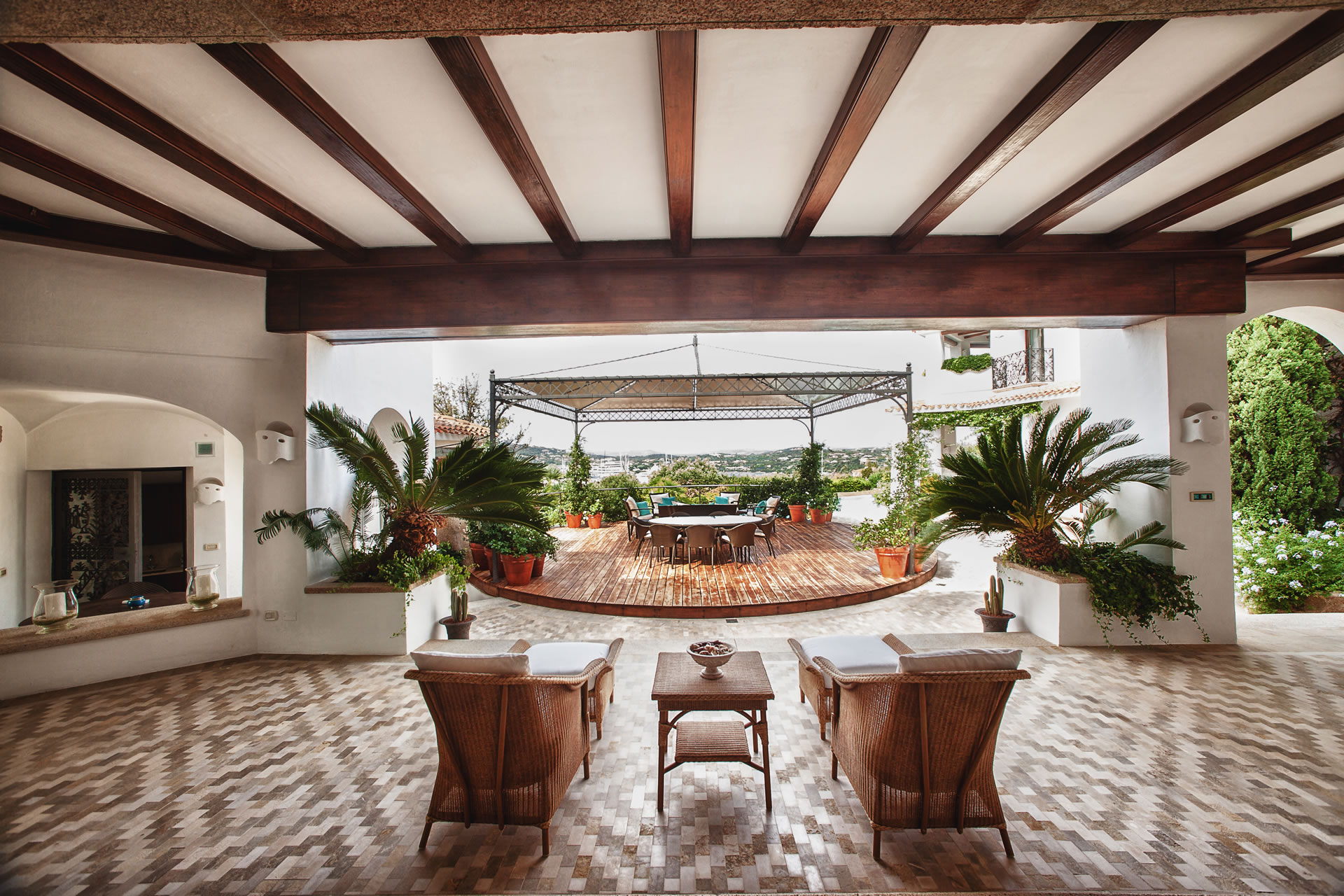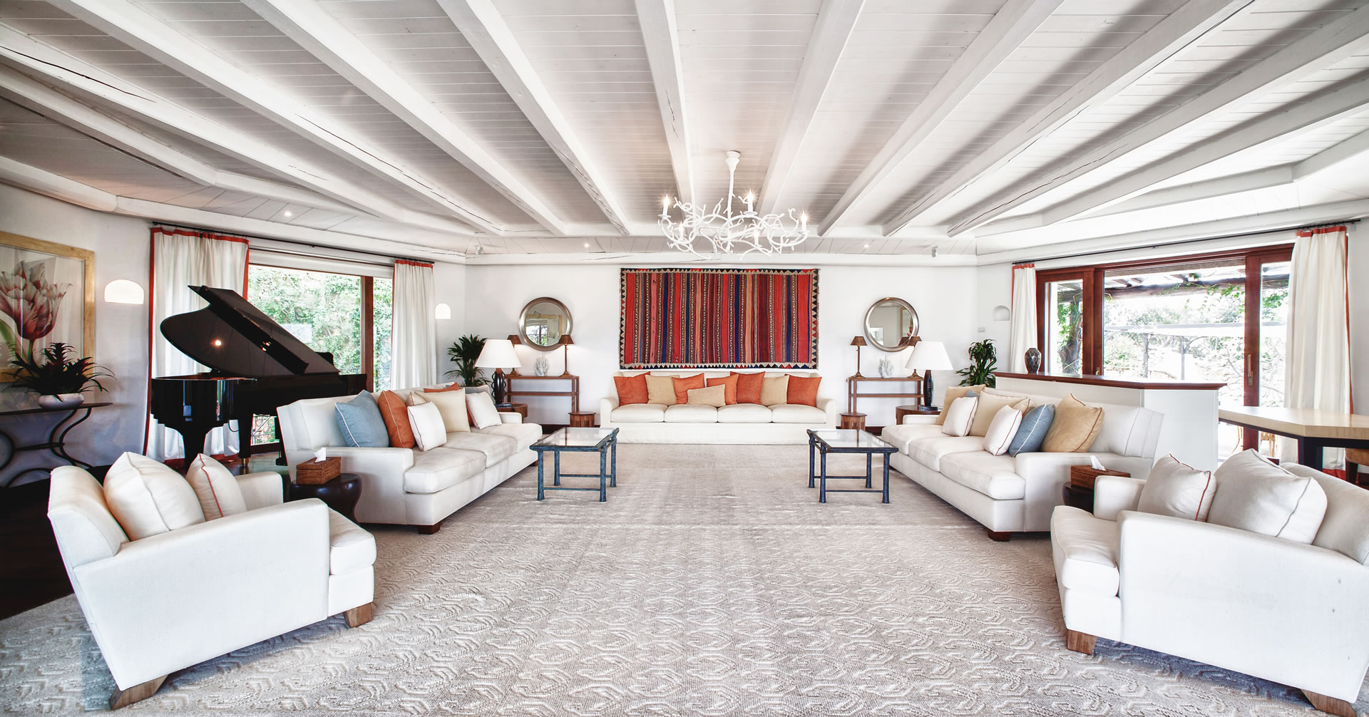 La villa si colloca nel cuore della Costa Smeralda, in una posizione tanto strategica quanto riservata, e riflette pienamente la filosofia di questa terra: armonia con la natura circostante, spazi esterni ampi, interni luminosi e un dialogo costante tra tradizione e innovazione. È proprio da questa visione che è nato l’intervento di rinnovamento voluto dai proprietari, che hanno voluto restituire alla casa uno stile contemporaneo, senza snaturarne l’anima originaria. Le precedenti finiture barocche, le dorature, le decorazioni in trompe-l’œil e le statue sono state sostituite da ambienti più essenziali, dominati da tonalità chiare e materiali naturali. Oggi, ogni stanza racconta una nuova armonia, più intima, più accogliente.
