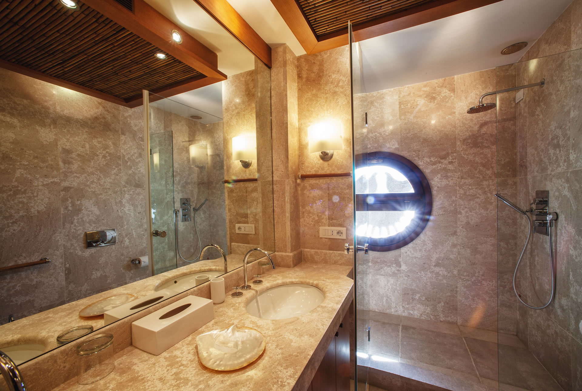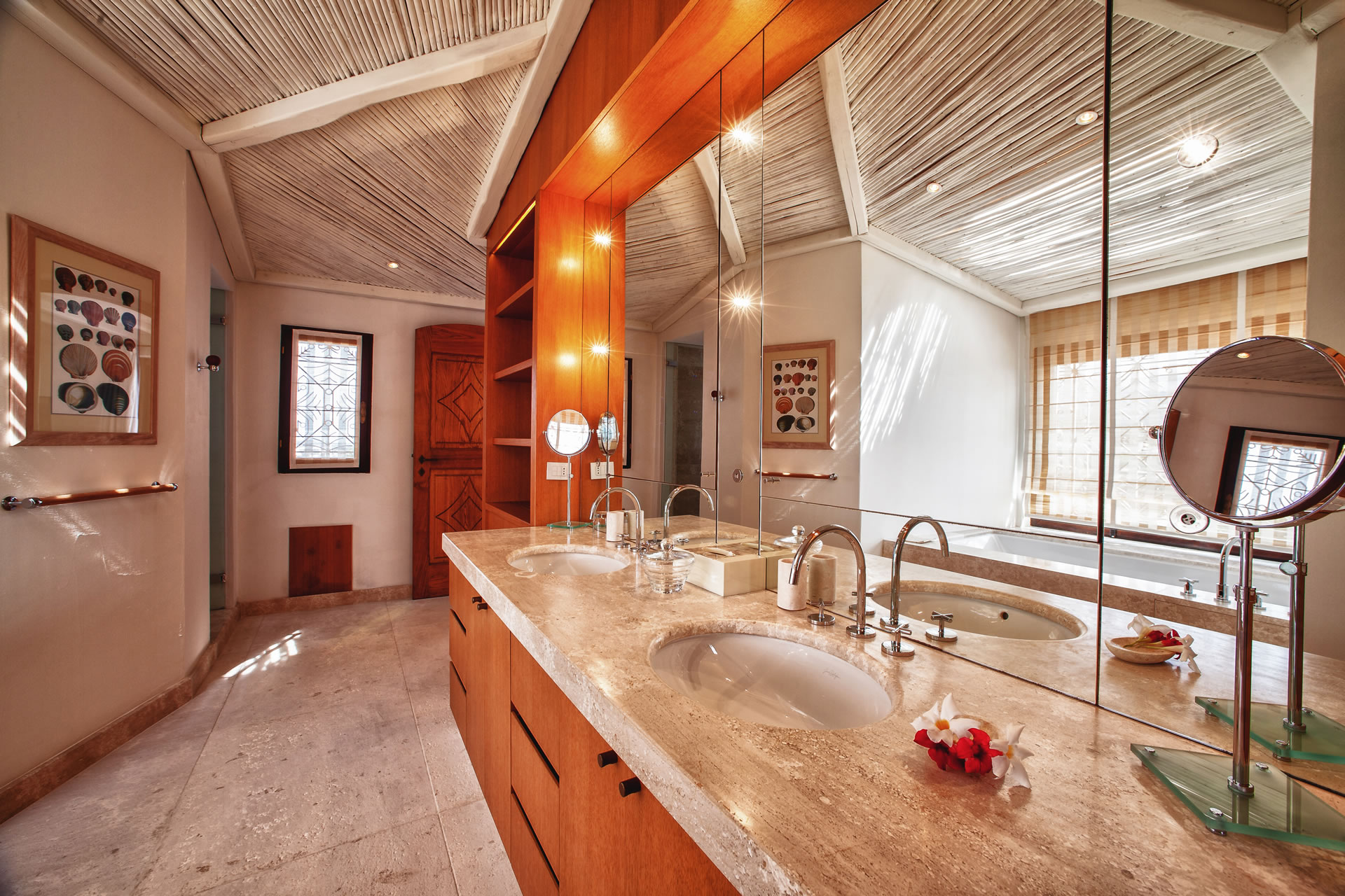 Distribuita su due livelli, la villa si estende su circa 2.500 metri quadrati di superficie, con sette camere da letto ampie e confortevoli. La suite padronale è un autentico rifugio nel rifugio, arricchita da una piscina privata e un solarium dedicato. Gli ambienti della zona giorno sono spaziosi e accoglienti, con un ingresso scenografico e una sala da pranzo pensata per i momenti di condivisione. Al piano inferiore si trovano la spa e la palestra, in continuità con una cucina professionale, una cantina, e le camere dedicate allo staff, garantendo piena funzionalità anche per soggiorni prolungati.