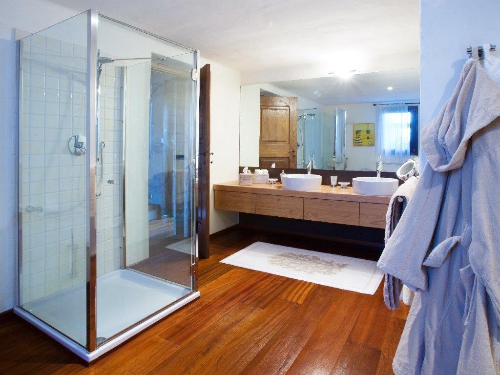 La zona notte ospita dieci camere da letto, ognuna con bagno privato, arredate con materiali pregiati e dettagli curati con gusto sobrio e funzionale. Completano la proprietà: