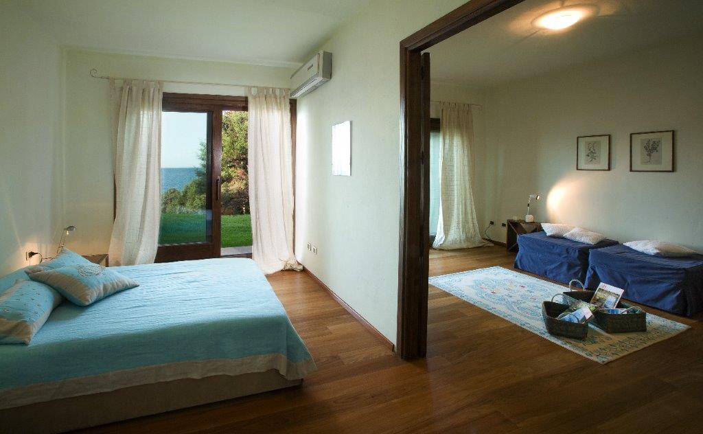 Due piscine private – una con sistema di nuoto controcorrente per adulti e l’altra con idromassaggio per bambini – si inseriscono nel paesaggio come laghi cristallini tra il verde e l’azzurro. Ogni spazio è pensato per offrire intimità, benessere e contatto diretto con il paesaggio costiero, in una delle località più esclusive del Mediterraneo.