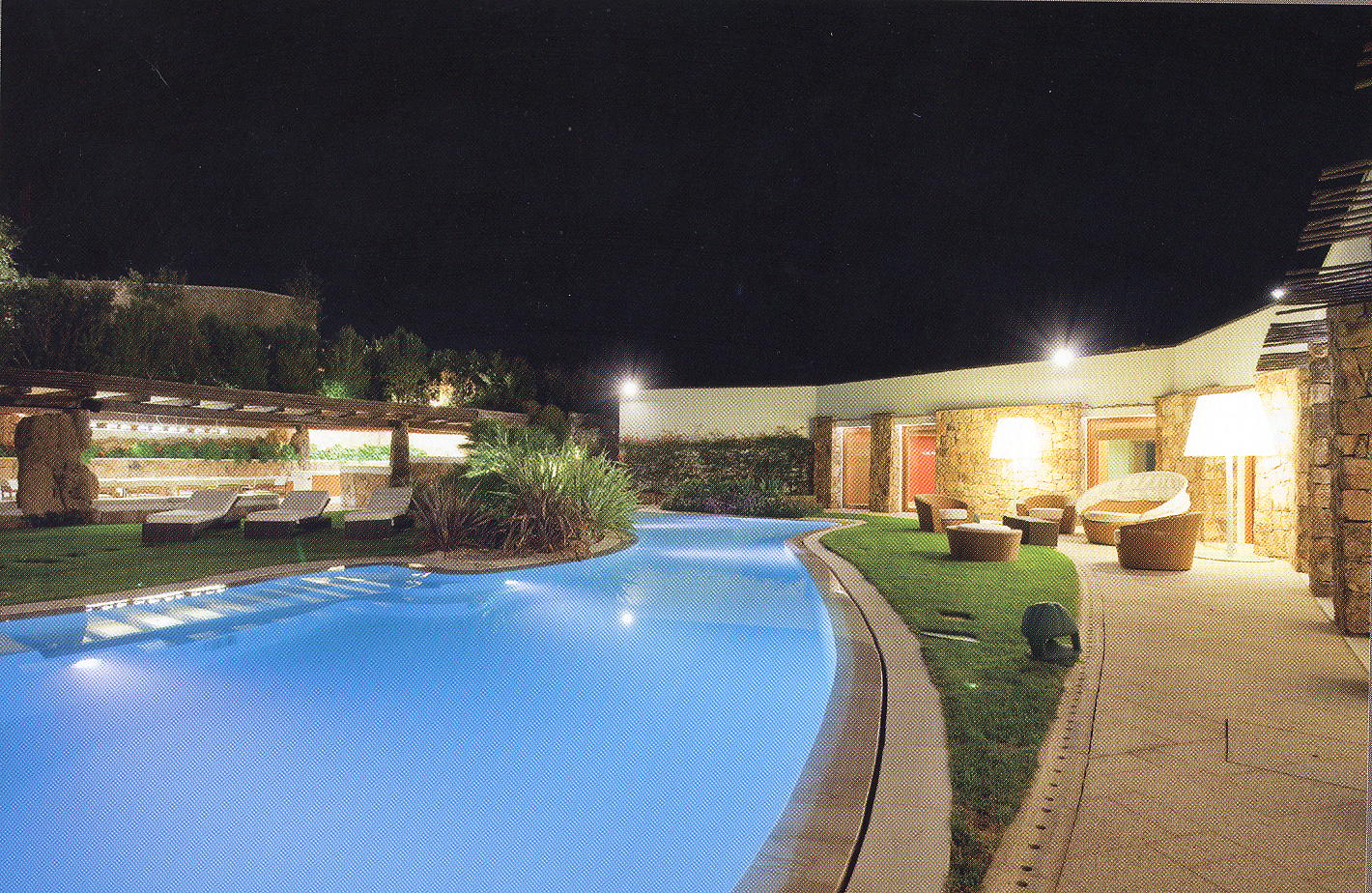 La zona notte si articola in ambienti spaziosi e riservati: la suite padronale, con bagno dotato di cromoterapia e vasca idromassaggio, è un’oasi privata immersa nella quiete. Le altre camere, tutte matrimoniali e con cabina armadio e bagno, proseguono la stessa linea di comfort e sobrietà. Scendendo al livello inferiore, la villa offre una sala cinema dotata di tecnologia full HD e uno spazio fitness originale, illuminato da un oblò immerso nella piscina.